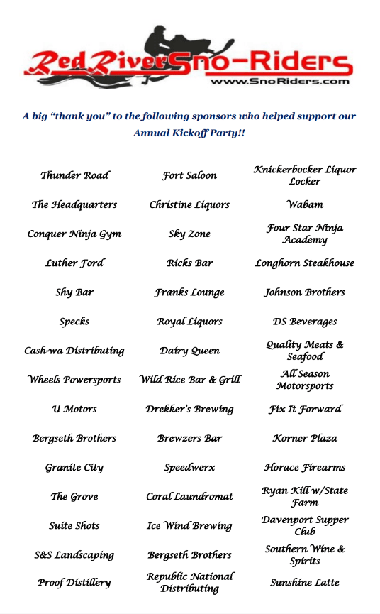 We are now headed into the heart of the season and are going in with our usual hope that we get enough snow to get the trail system opened for all to enjoy. After 2 seasons of lacking snow cover, us snowmobilers are ready for a “normal” season. So, make sure your sleds are ready to go and keep doing that snow dance. The trails are currently closed as we await enough snow to create the minimum 4″ base required to open. Ongoing small snows will help, but we really need one more good snow event to get us in good shape.