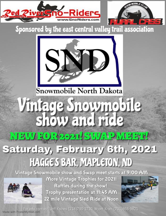 Here is a flyer with the information we are currently broadcasting but stay tuned here and/or on Facebook for additional details/updates. Keep in mind, this event is across the Red River Sno-Riders and Rural Cass trail systems so there is a lot of opportunity to social distance. 🙂